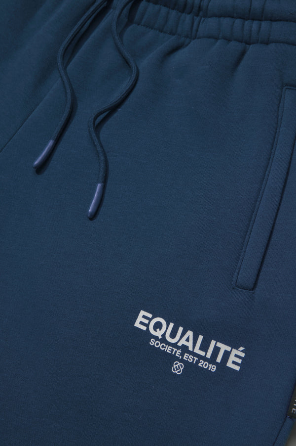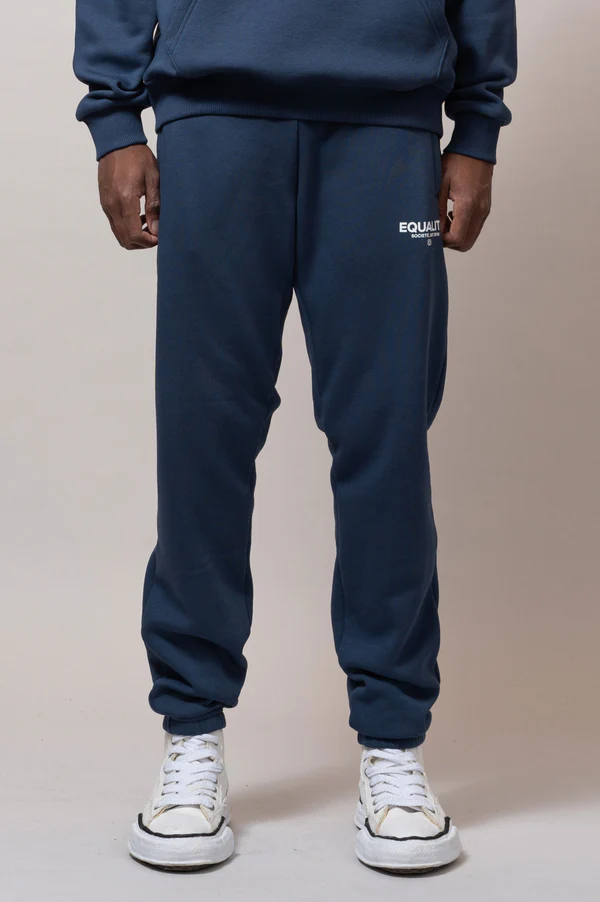 Maak kennis met de Equalité Societé Jogger Pants in Blauw, een regular fit pants met twee steekzakken voorzien van een rits. Deze Societé Jogger Pants heeft een mid-rise taille met trekkoord en 1 achterzak. Het is voorzien van een wit zeefdruk, signature Societé logo op de voorkant van het linker been, geïnspireerd op onze Membersclub. Deze Societé Jogger Pants is onderdeel van een Set, te combineren met een bijpassende Tee, Hoodie & Zip-up Hoodie.