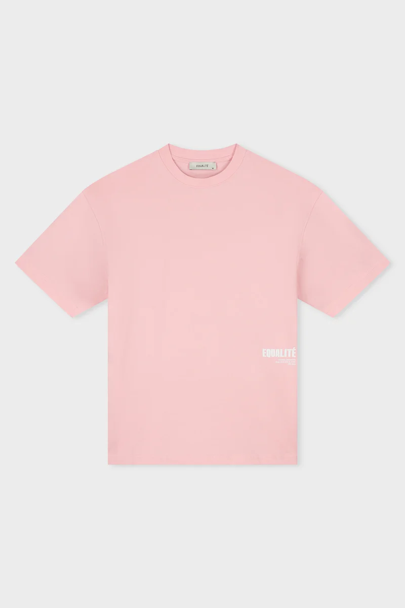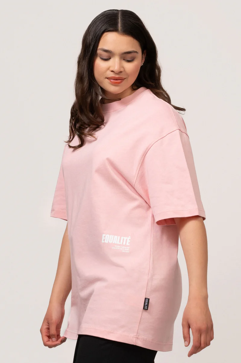 Get to know de Equalité Elia oversized tee in Roze. De tee heeft een oversized fit en is voorzien van een ronde kraag. Op de zij en op de rug zitten witte zeefdruk artworks. De nek is voorzien van het signature Societé Symbool.